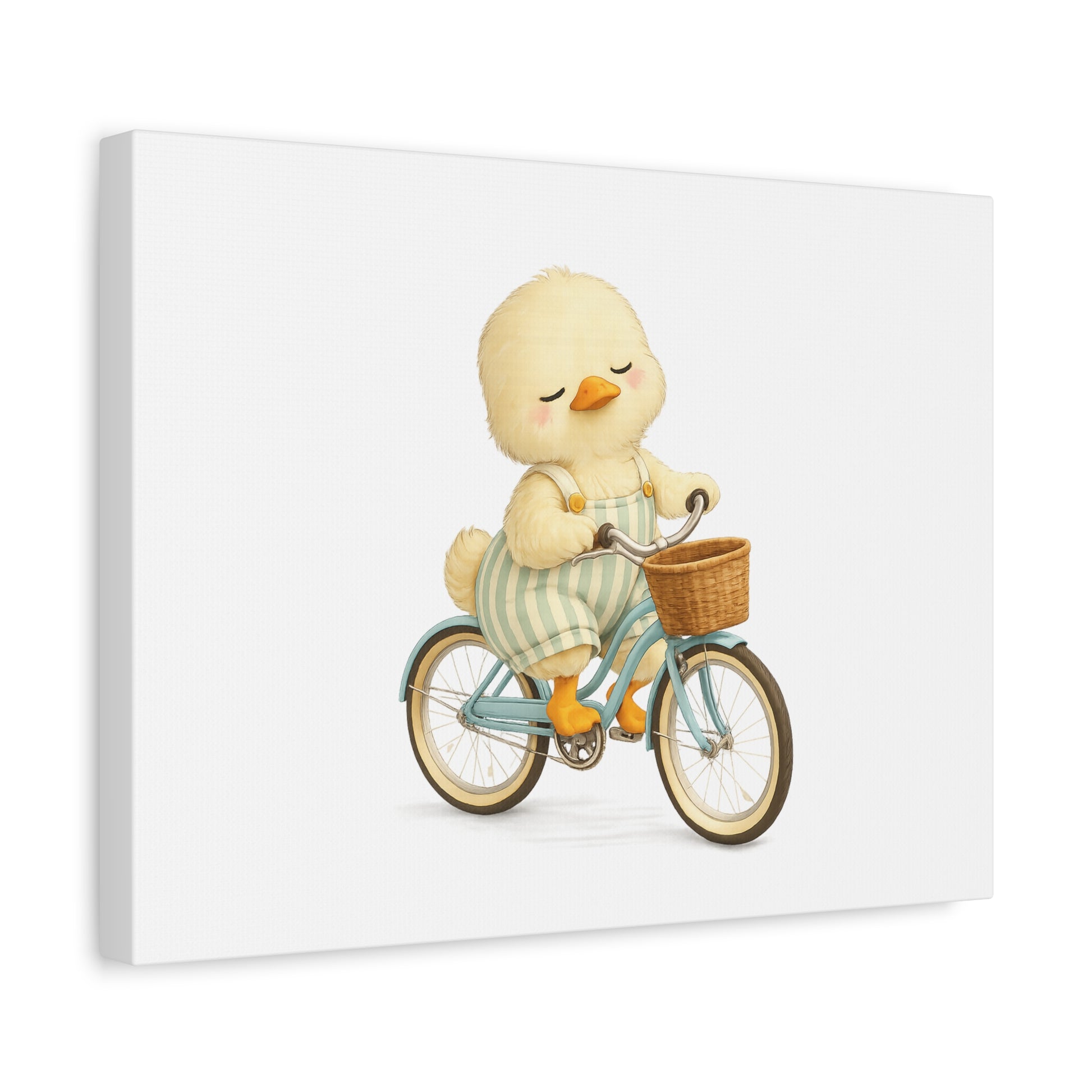 A duck rides a bicycle through an imagined afternoon, caught mid-motion. This storybook-style watercolor illustration leans narrative rather than routine, offering a fleeting moment of movement, lightness, and quiet freedom. It feels like a page from a book left open.